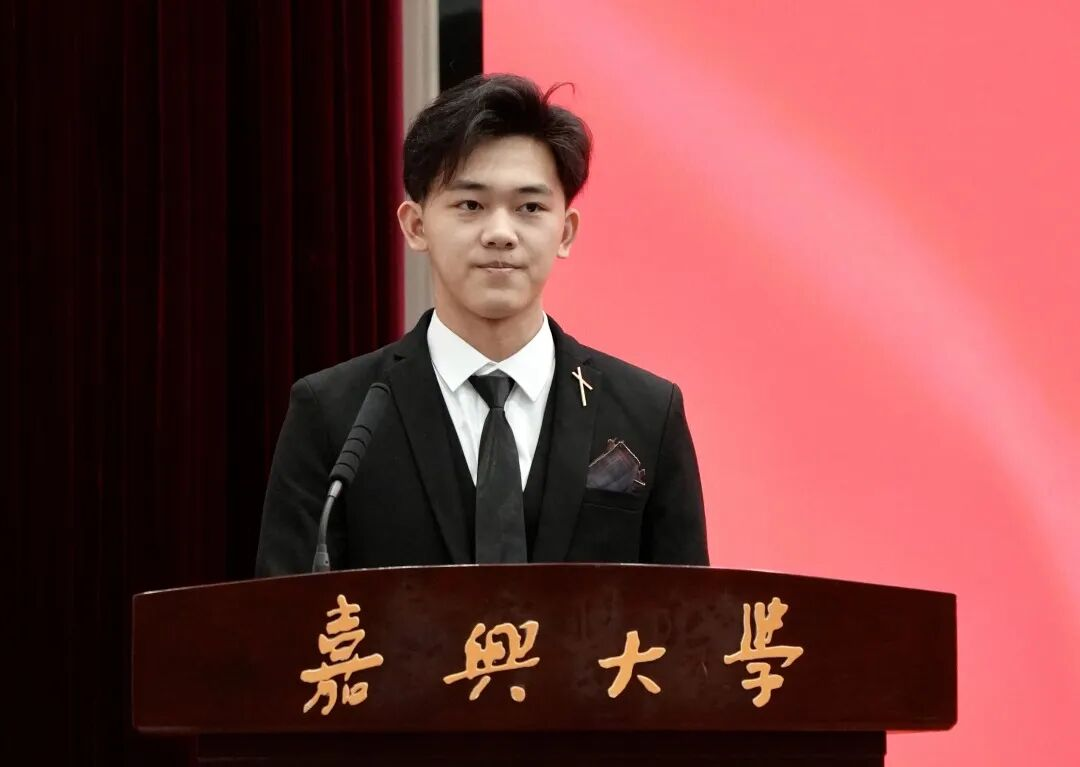 数媒252班张涛同学提出了“转角色夯基础、践所学强本领、广涉猎拓视野、持初心敢突破”四点大学规划。并代表全体新生承诺,将以笔为刃、以创意为墨,踔厉奋发、不负韶华,绘就属于自己的精彩篇章。